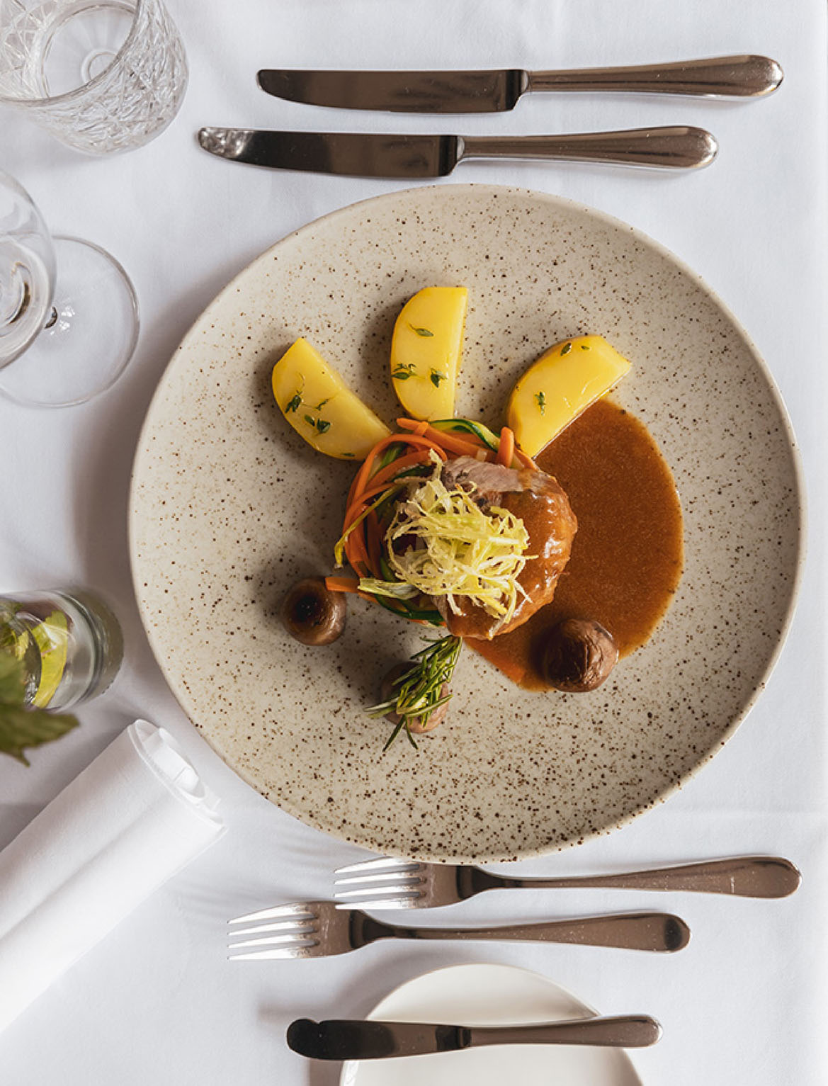 Our menus delight the palate with sublime dishes, prepared using ingredients sourced from the finest local producers. Rooted in tradition, our cuisine surprises with refined pairings. Upon request, we are happy to serve excellent vegetarian dishes as well.